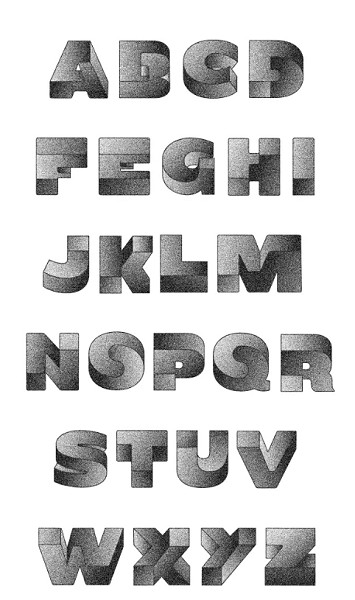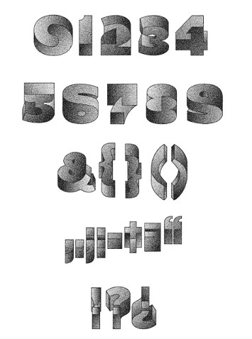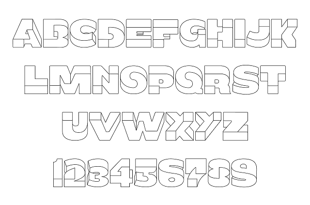 This font contains symbols that represent impossible objects. However, their perception is somewhat complicated by the fact that there are no holes in the symbols.