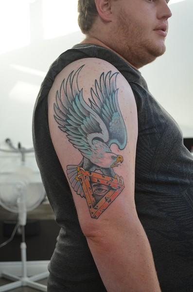 The frequent theme of such tattoo is an all-seeing eye inside impossible triangle.