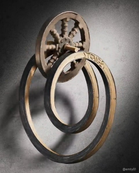 Фигура в данной анимации представляет собой вариацию ленты Мебиуса, в которой две петли. Кроме этого фигура постоянной меняет свою форму, чтобы обеспечить движение колеса, которое установлено как раз между двумя петлями фигуры.