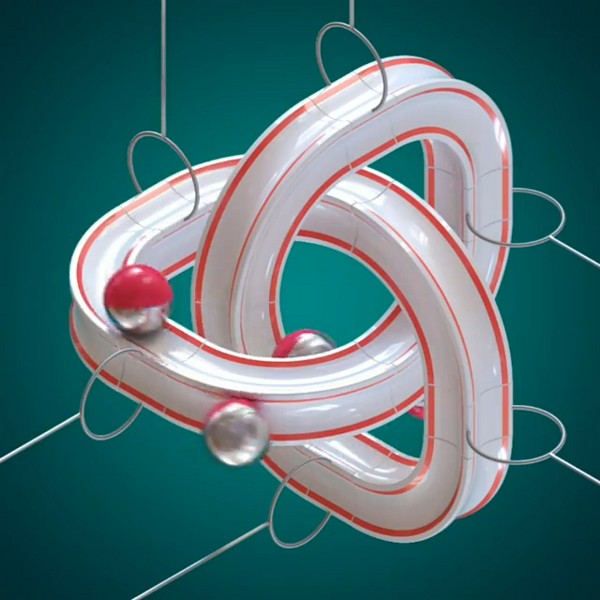 Эта фигура относится к виду замкнутых односторонних фигур наподобие листа Мебиуса. Мы видим, как шарики, катящиеся по фигуре, появляются сначала снаружи, а затем, внутри фигуры, не пересекая ни одной грани.