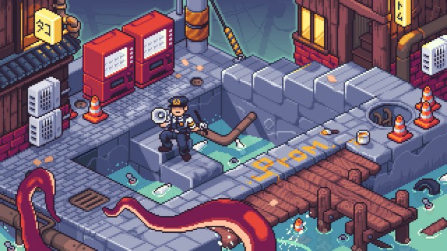Автор иногда создает изображения в стиле пиксель арт и анимирует их. В этот раз мы видим бесконечную лестницу вписанную в окружение современного Токио.