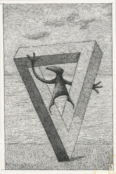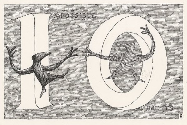Представленные изображения из неоконченной серии "10 невозможных объектов". Первое изображение - обложка серии. На второй изображен Figbash внутри треугольника Пенроуза.
