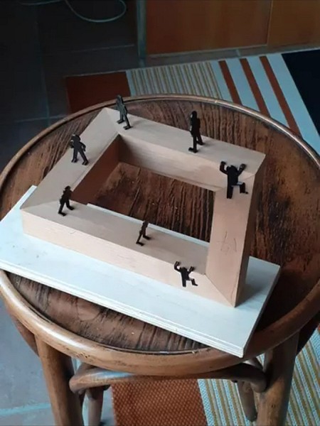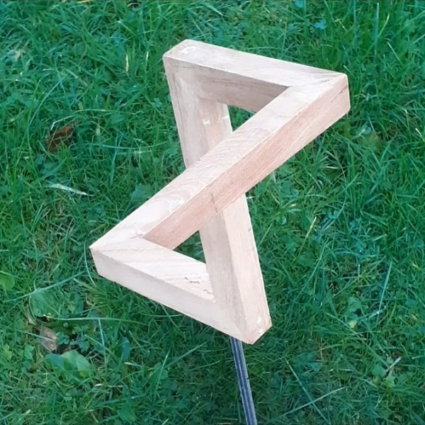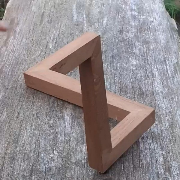 Художник создает модели классических невозможных фигур из дерева. Фотографии фигур заставляют думать, что невозможные фигуры действительно могут существовать в реальном мире.