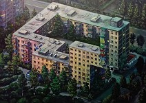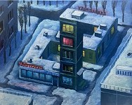 Художник Дамир Муратов из Омска создал несколько картин с невозможной архитектурой. В основном, автор изображает в своих работах типичные ландшафты и сцены, характерные для русской глубинки. Часто на его картинах изображены типичные панельные дома, которые можно увидеть в районах любого российского города, построенных в советское время. Но именно их казалось бы скучная форма, состоящая из квадратных панелей, прекрасно подходит для создания невозможных сооружений.
